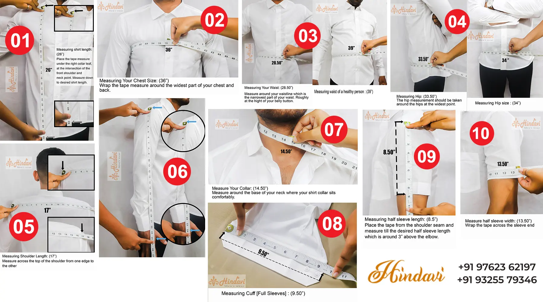 Note: If you want perfect fitting (except standard size: S (36), M (38), L (40), XL (42), XXL (44), XXXL (46)), then on-body and on-shirt measurements are both options available. Please scroll down to learn how to measure it & fill details.
